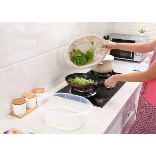 This innovative colander bowl is perfect for draining and straining pasta, vegetables, fruits, and more. The unique design features a perforated lid that allows water to drain away while trapping food inside the bowl. The colander bowl also has a built-in handles that make it easy to carry and pour. The lid also doubles as a serving bowl, making it perfect for taking food to potlucks and picnics. The colander bowl is made of durable BPA-free plastic and is dishwasher-safe for easy care. Whether you're cooking for a crowd or just making dinner for yourself, the colander bowl is a must-have kitchen tool.